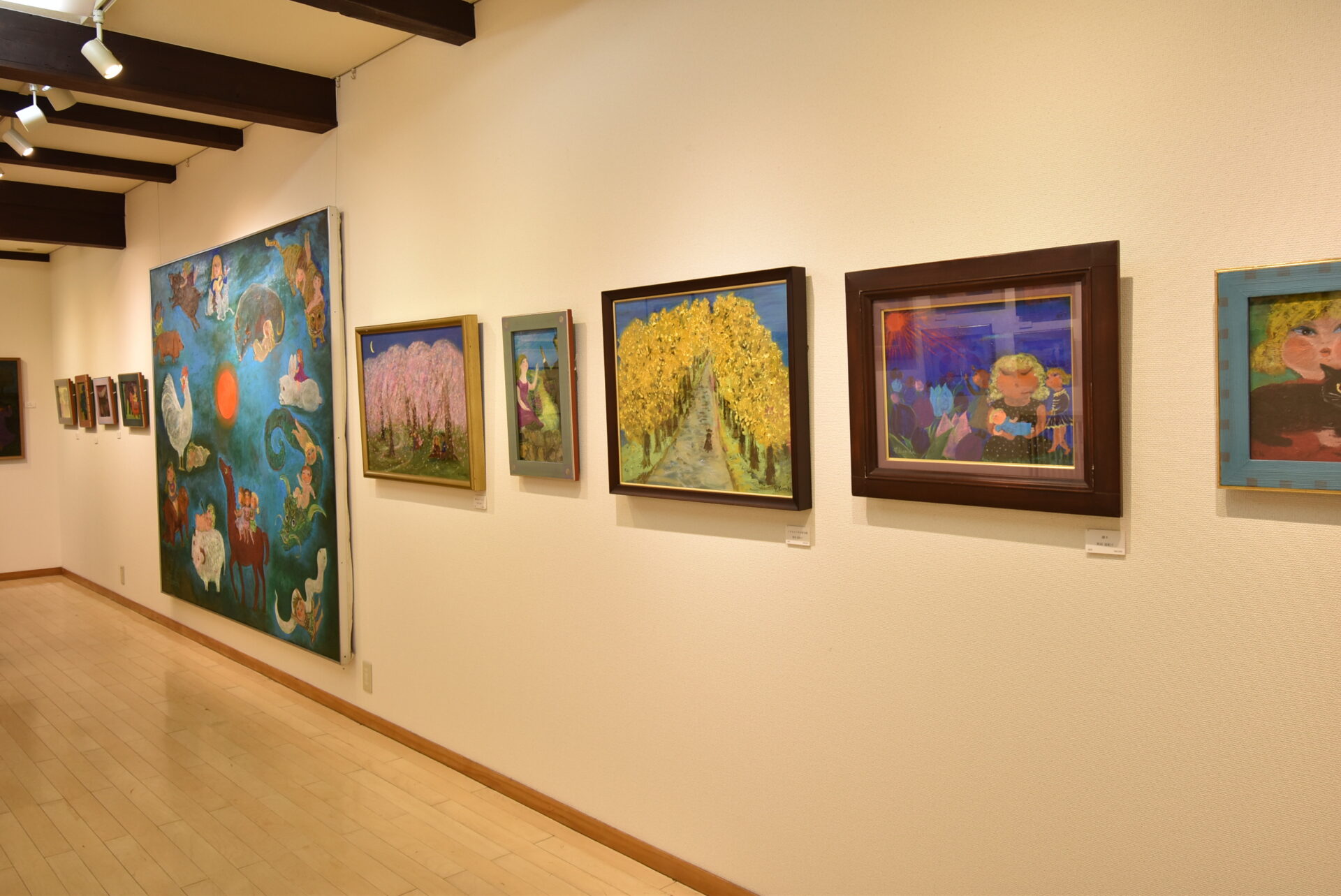 2009年に初めて個展を企画させていただいて以来、夫君暢先生との二人展、お嬢さんたちも加わっての5人展と、幸福な家族の姿は作品のままにそこにありました。その後、2016年に三女の三紀さんを、2018年に暢先生を亡くされた冨紀子先生。けれど悲しみの中から制作された作品たちの今までにも増した明るさ、温かさは見る者を驚かせました。
