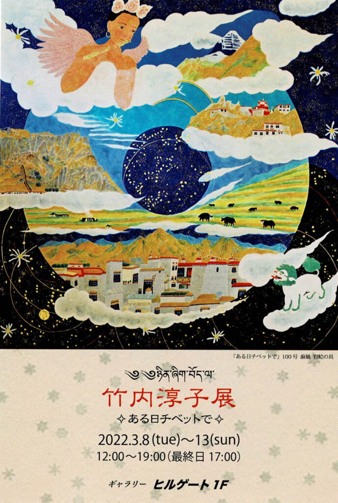 (1F)竹内淳子展 ✧ある日チベットで✧/(2F)日高理恵 銅版画 emotion 基本情報 1F【竹内淳子展 ✧ある日チベットで✧】(日本画) 2022年3月8日(火)~3月13日(日) 12:00~19:00(最終日~17:00) 2F【日高理恵 銅版画展 emotion】(銅版画) 2022年3月8日(火)~3月13日(日) 12:00~19:00(最終日~17:00)