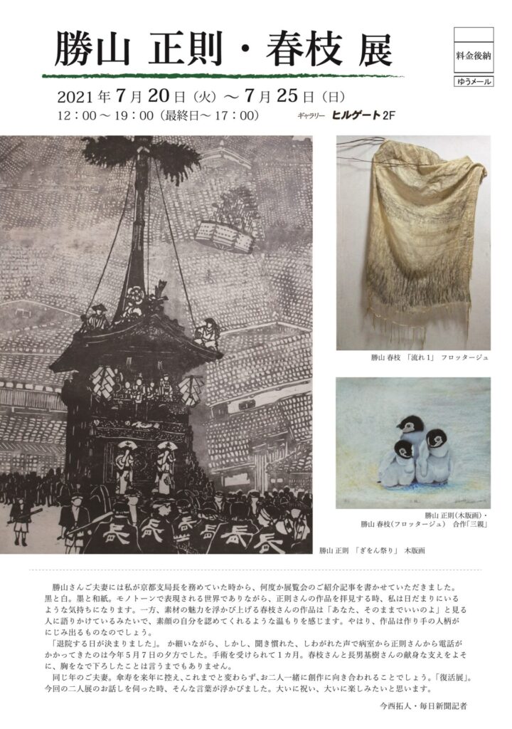 京都・ギャラリーヒルゲート「勝山正則・春枝展」(以後毎年開催)