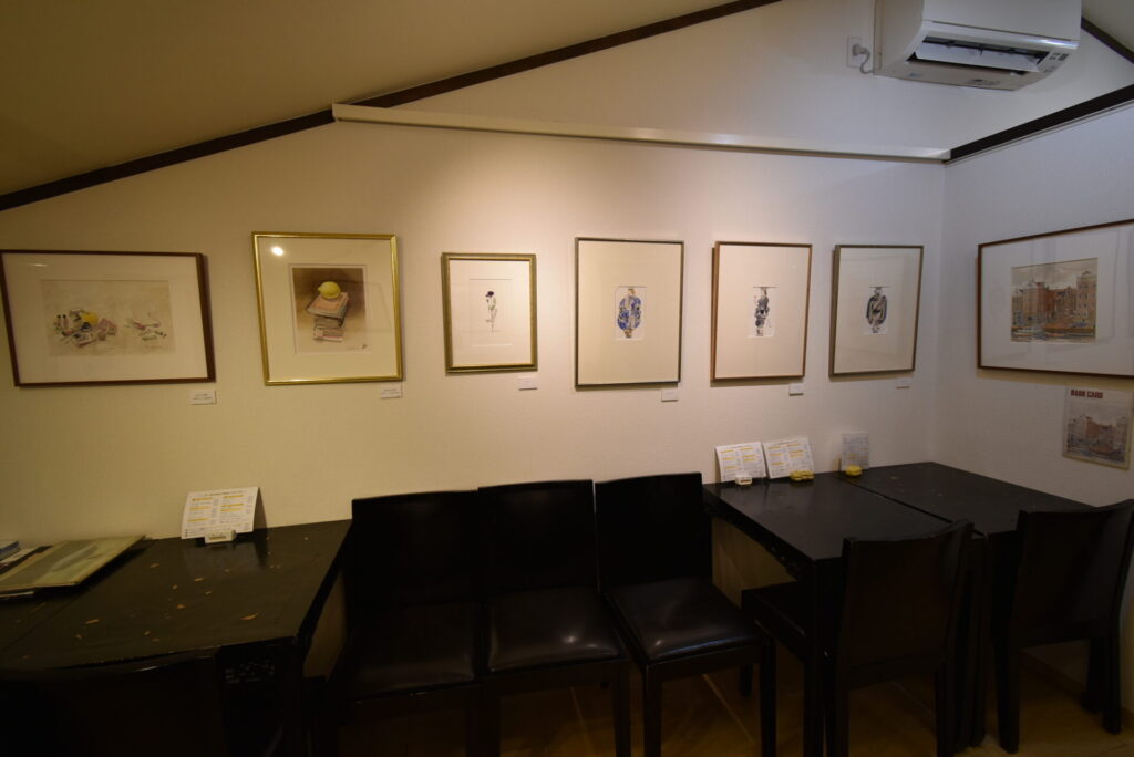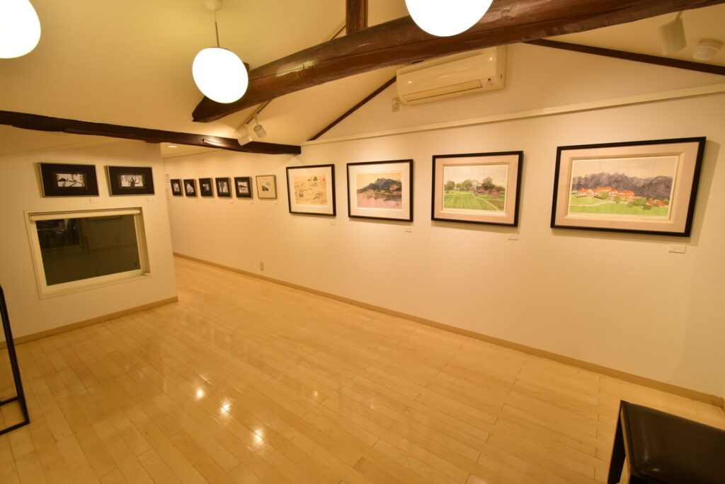 最後にお会いした2019年の7月までの間に先生からお預かりして展示した作品は、水彩やデッサン等の直筆だけで400点近く。それらは全国の御客様の許へ旅立ち、画廊に残ったのはわずか10数点にすぎません。今回は、その「託された絵の名残り」ともいうべき作品に、切絵と版画を加えて展示させていただきます。