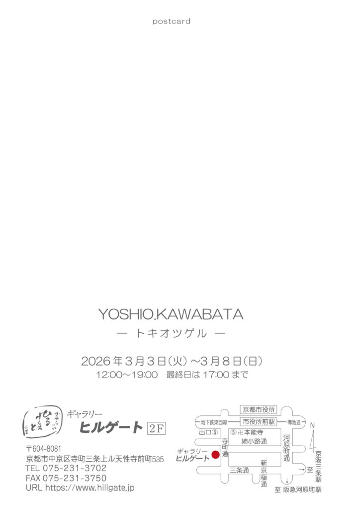 開幕まで 残り52日 立体 絵画 川端 祥夫 展/YOSHIO.KAWABATA ―トキオツゲル― 基本情報 会期2026年03月03日(火) 〜 2026年03月08日(日) 会場2階 時間12:00~19:00(最終日~17:00)