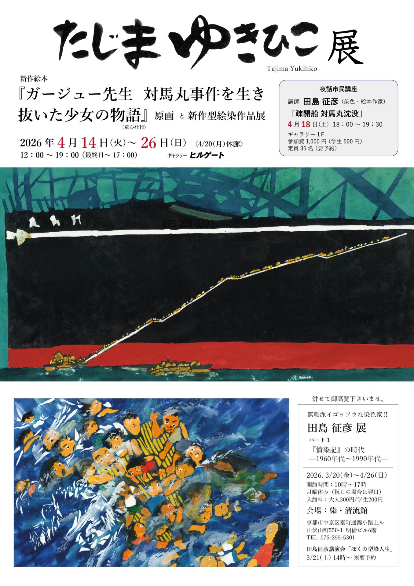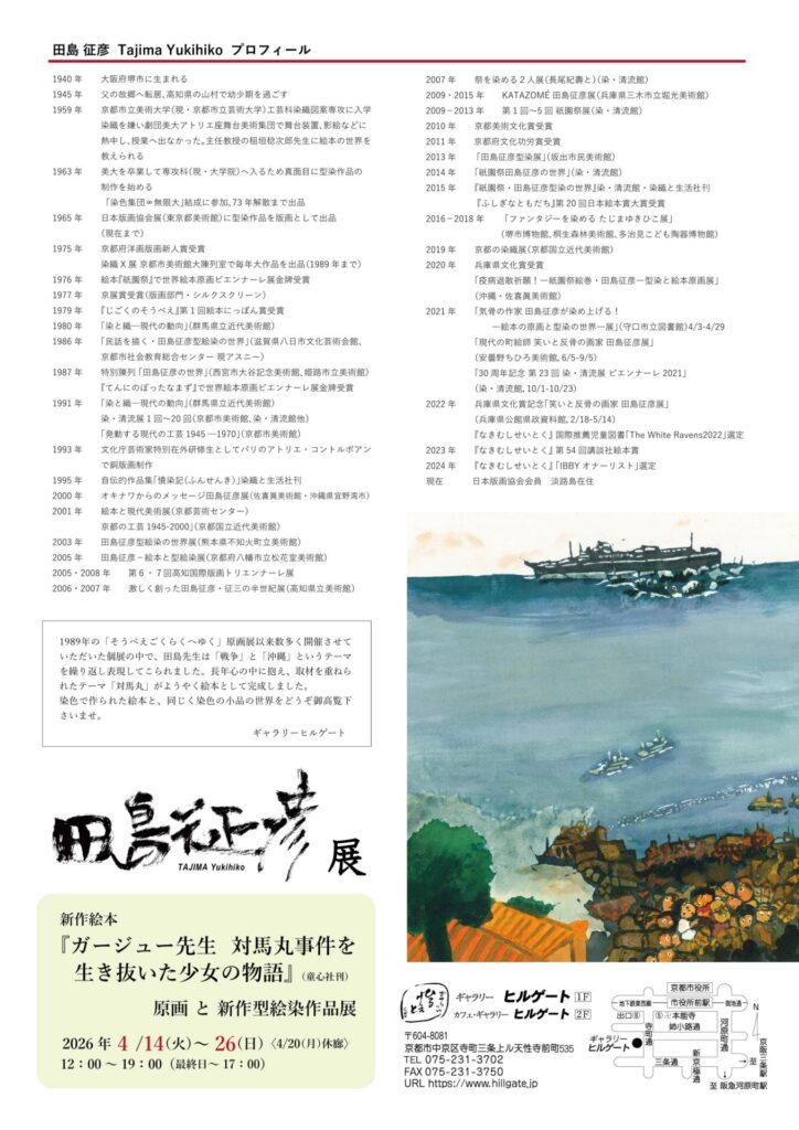 田島 征彦 新作絵本『ガージュー先生 対馬丸事件を生き抜いた少女の物語』原画 と 新作型絵染作品展
