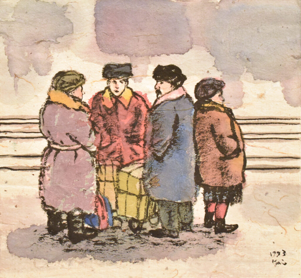1983 雑誌『ペンギン・クエスチョン』で鉛筆による社会諷刺画「仮設縁起絵巻」の連載