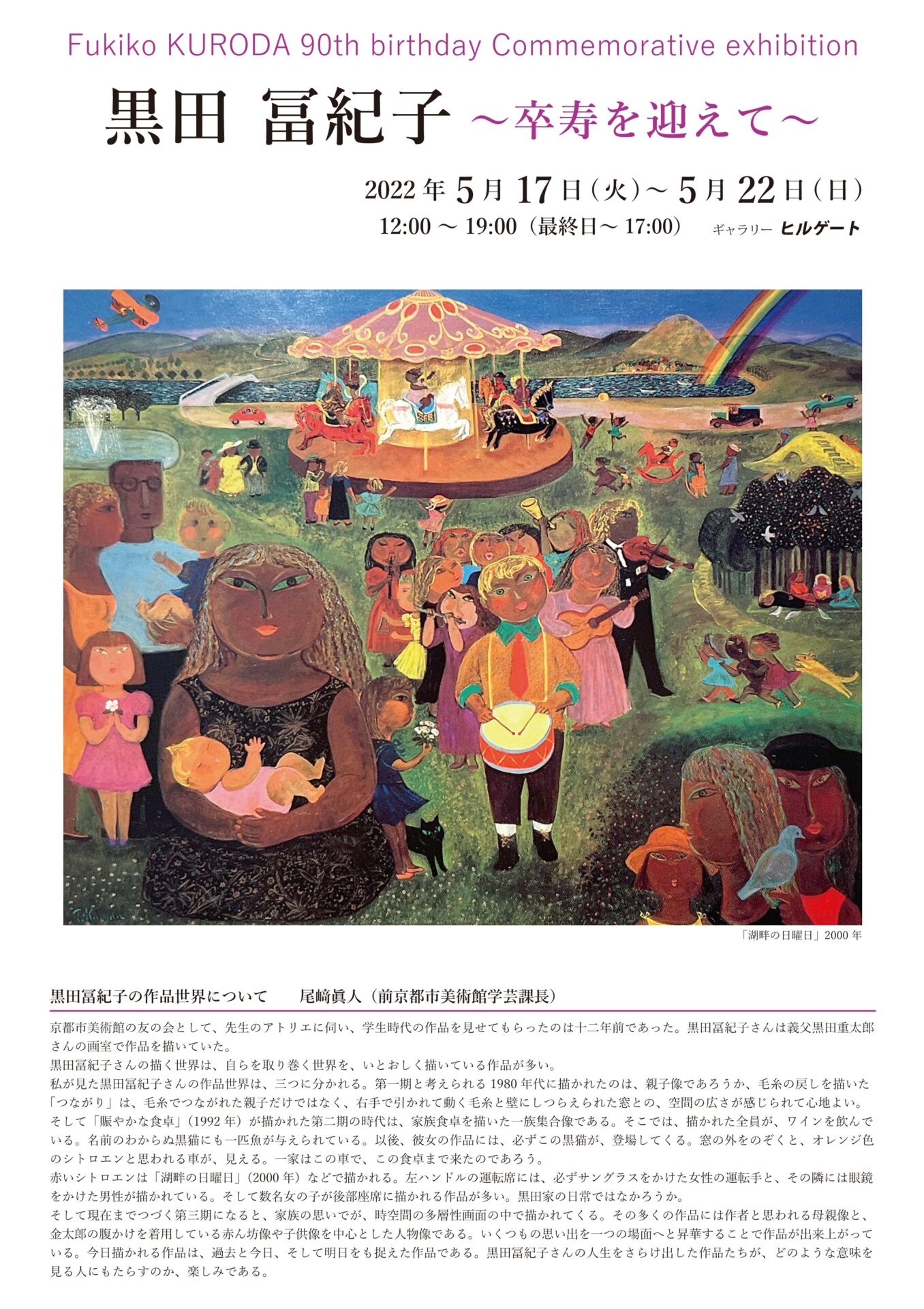 焼け跡の神戸から京都美大に通い、様々な困難を乗り越えて制作しつづけてこられた作家の強さが、そのユーモア溢れる画面から見る者の心に伝わる気がします。