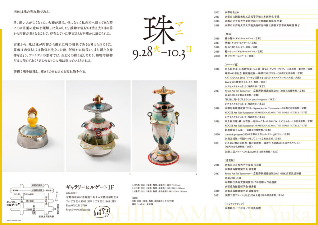 (1F)西久松友花 珠(マニ) 展(陶)/(2F)大西正彦 写真展(A室)・藪田正弘 作品展 MANHATTA-N(2021)~多層の街、その”かたち”を描く~(B室)(写真)