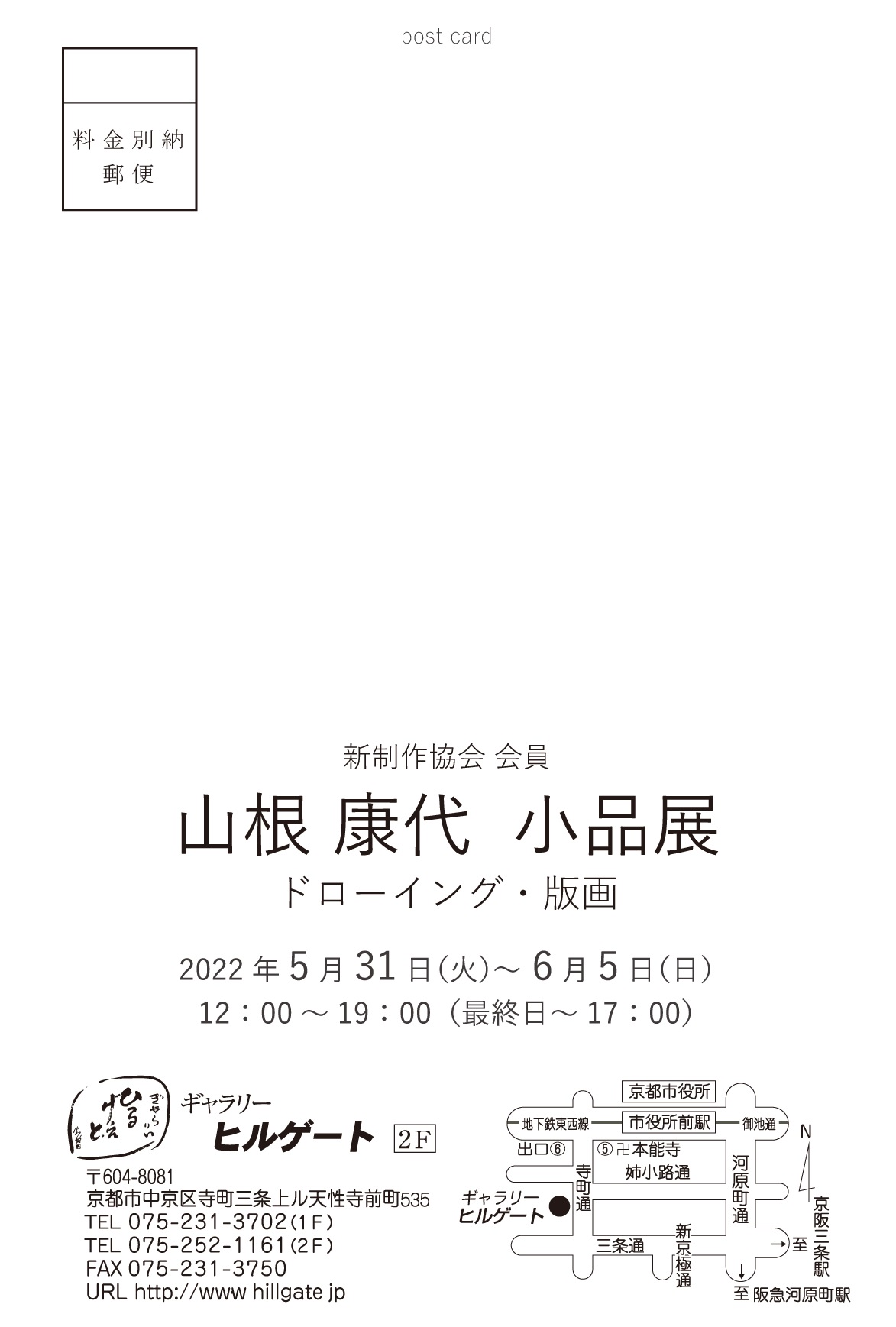 この展覧会は終了しました 絵画 山根康代 小品展 -ドローイング・版画- 基本情報 会期2022年05月31日(火) 〜 2022年06月05日(日) 会場2階 時間12:00~19:00 (最終日~17:00)