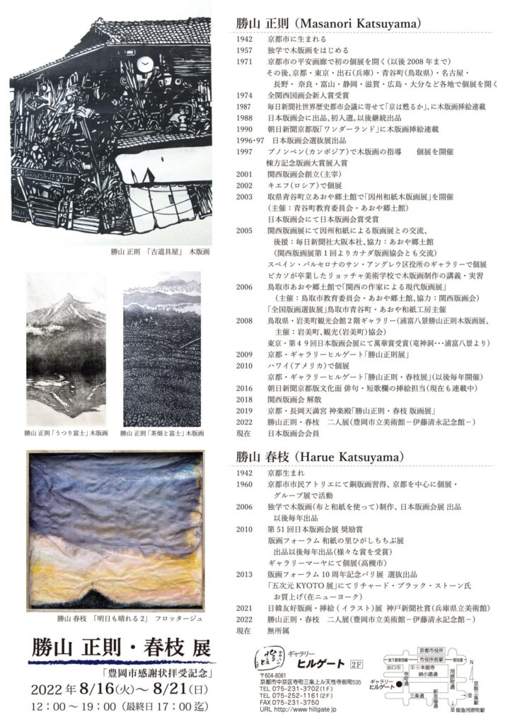 京都・ギャラリーヒルゲート「勝山正則・春枝展」(以後毎年開催)